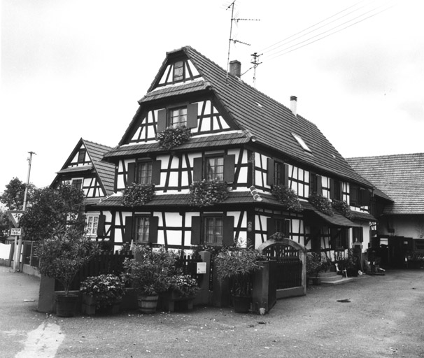 Le logis de cette ferme porte la date 1762 en 2 endroits : sur la clef en relief aux initiales DW ornée d'une coquille de la porte de cave, et sur l'un des 2 poteaux corniers qui sont décorés de têtes et de colonnettes torsadées ; il a été agrandi pour Georges Schiellein en 1860, comme en témoigne l'inscription sur le linteau de cave en rez-de-chaussée qui le prolonge ; la remise et l'écurie portent l'inscription G Schiellein, M C Erlinger 1871 sur une poutre ; d'après le propriétaire la grange avec étable a été reconstruite après destruction lors des bombardements de 1945