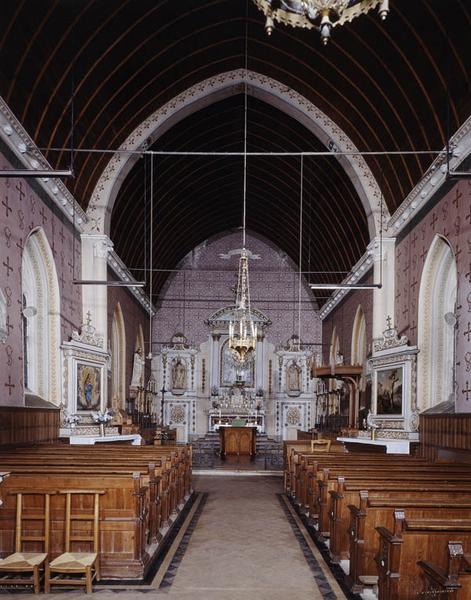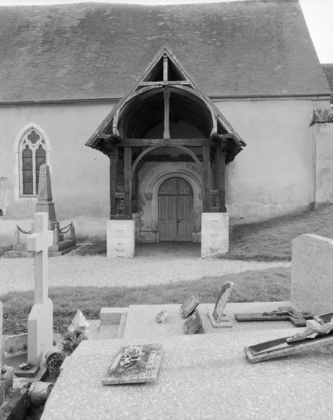 Portail nord du 12e siècle. Porche en bois du 15e ou du 16e siècle. En 1766, travaux effectués par J. _Fromage, architecte, et L. Houlette, selon J. Guérin. Clocher en bois appuyé sur des poteaux intérieurs, selon A. Dallet, détruit vers 1888. Construction d'un nouveau clocher à l'est en maçonnerie, avec sacristie au rez-de-chaussée, sur les plans d'E. Le Reculeur, architecte à Vimoutiers, achevé en 1901. Au cours de la même campagne, reprise des murs du choeur et décor intérieur en plâtre (corniche, moulures, chapiteaux de style 14e siècle). En 1910, pose de l'enduit extérieur et sculpture des chapiteaux du portail sur un dessin d'E. Le Reculeur. Flèche réparée en 1921