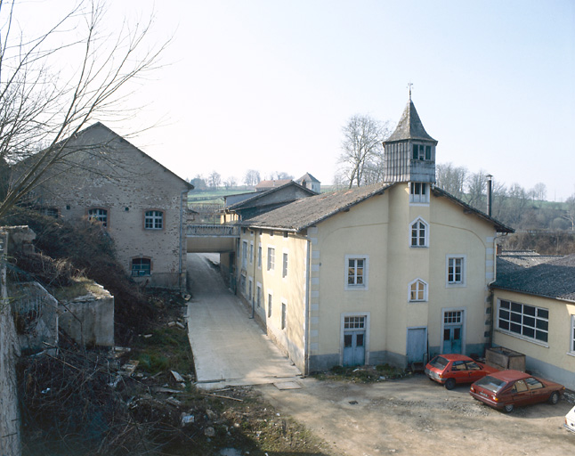 Ensemble de plusieurs bâtiments occupant un espace situé sur la rive droite de l'Aixette après son confluent avec le ruisseau de l'Alma ; bâtiment principal, à un étage carré et étage de comble, comportant contre le mur pignon nord une tour en demi hors-oeuvre terminée par un clocheton hexagonal en bois et couvert d'ardoise servant autrefois de pigeonnier ; rez-de-chaussée avec piliers de soutien ; bâtiment comprenant les ateliers de fabrication d'épingles à cheveux (forme et vernissage) et l'espace de stockage ; du sud au nord, et accolés au mur goutterot ouest de ce premier bâtiment, se situent trois bâtiments en rez-de-chaussée : un bâtiment affecté au sanitaire, un bâtiment contenant la salle des fours et un troisième bâtiment servant d'atelier de serrurerie et de local à machine à émail ; machine avec l'inscription : Antwerp, Belgium, Ooms ; bâtiment en rez-de-chaussée, disposé en équerre par rapport au mur pignon nord et abritant l'atelier de mécaniq!