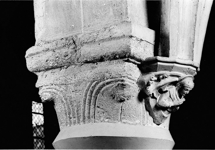 support : chapiteaux des colonnes de la nef ; support : chapiteaux du choeur ; support : pierre sur le tympan du portail ; support : extrados de l'arc en accolade du portail ; support : flanquement de l'arc du portail ; sujet : armes illisibles, symbole du vent ; support : chapiteau formant bandeau des colonnes engagées du portail ; support : culs de lampe du bas-côté