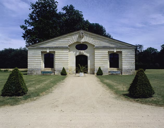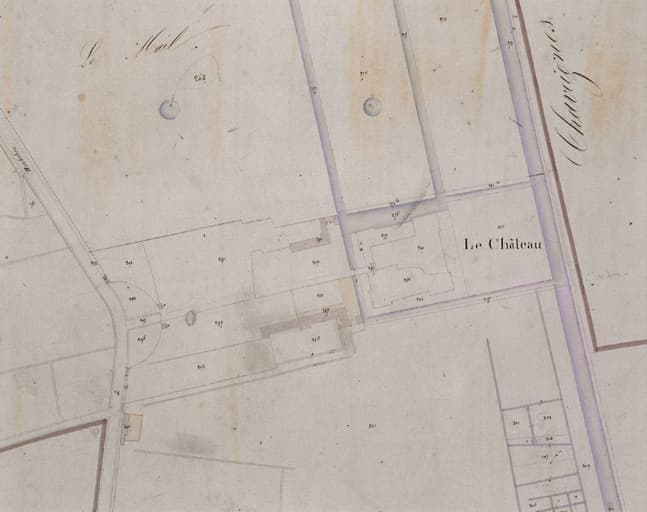 cour ; basse-cour ; jeu de paume ; chapelle ; grotte artificielle ; douves ; parc