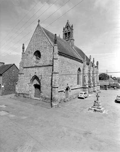 Plan et ordonnance intérieureL’église présente un plan à vaisseau unique, sans transept ; un arc diaphragme formant ressaut à l’extérieur pour porter un petit clocheton sépare la nef du chœur. Le chevet à pans coupés peu fréquent en Bretagne pour les petits édifices est à la fin du XVe siècle une formule moderne qui semble avoir eu la préférence de la maison de Rohan et se retrouve dans la plupart des édifices construits par les membres de cette famille. Comme c’est souvent le cas dans la province, malgré l’unité de style du bâtiment, la nef est traitée plus simplement que le chœur et n’est éclairée que par deux fenêtres au sud et au nord, situées juste avant l'arc diaphragme. Elle n’était pas non plus à l’origine prévue voûtée mais simplement lambrissée, ce que confirme, à l’extérieur dans cette partie de l’édifice, l’absence de travées et de contreforts. A l’intérieur, les colonnettes engagées actuelles et les voûtes sont des réalisations en plâtre de 1901. Enfin, une description de cette époque précise que les voûtes du chœur n’avaient pas été achevées. De part et d’autre de l’arc diaphragme qui marque l’entrée du chœur, deux autels, sans doute à leur place d’origine, sont surmontés de retables en granite du tout début du XVIe siècle sensiblement plus longs que ces derniers. Ces retables, creusés de trois niches destinées à recevoir des statues, sont parmi les rares conservés de ce genre en Bretagne. Leur emplacement actuel est sans doute le résultat des travaux de la fin du XIXe siècle : il est très probable qu'ils étaient primitivement installés dans le chœur, collés en équerre, au-dessus des autels secondaires, contre les murs nord et sud où ils devaient déterminer de petites chapelles orientées réservées aux familles de la noblesse. Cette disposition originale est aujourd'hui disparue et les autels du chœur ont été plaqués contre les murs latéraux. En fait, c’est donc l'ensemble du chœur, fermé par une clôture en bois, qui était retranché. La partie ancienne de la sacristie accolée contre le mur nord du chœur, conserve sur sa clef de voutes un écusson mi parti des armes de Rohan et de Landal qui permettrait d'y voir un ancien oratoire seigneurial. L’autel majeur, conservé et assorti de sa crédence et surtout d’un sacraire engagé dans une des piles, confirme, avec la qualité de ce chœur dont les parements internes sont en pierre de taille, l’intention des commanditaires de lui donner le luxe et les dimensions d’une église paroissiale.Ordonnance extérieureLe parti du chevet à pans coupés, peu employé en haute Bretagne au XVe siècle, alors qu'on lui préfère majoritairement le chevet plat, y compris dans des édifices relativement importants peu apparaître ici comme une sorte de manifeste architectural à forte connotation politique. Cette forme nouvelle et ce n'est sans doute pas un hasard est employée à la fin du Xve siècle dans plusieurs édifices construits dans le domaine des Rohan, dont le plus représentatif est la chapelle Notre-Dame de Bon Encontre édifiée en 1510 par le vicomte Jean II de Rohan. Les contreforts à arêtes sont semblables à ceux que l’on trouve au porche de l’église de La Nouaye en Ille-et-Vilaine, chantier commandité par une autre branche de la maison de Rohan, celle de Rohan-Gié. Ils sont surmontés de hauts pinacles, qui sont plus épais sur le chœur que sur la nef. L’association à la rencontre de la nef et du chœur d’une vis d’escalier qui émerge au nord sous la forme d’une tourelle avec clocheton ouvert posé sur le faite du toit, s’inspire d’un modèle prestigieux, celui de la basilique du Folgoët, dont la tourelle d’escalier de Broualan reprend aussi le décor de gâbles ornant la base du clocheton à pans coupés. Les pinacles des trois contreforts déterminant les deux premières travées du chœur au sud, nettement plus grêles que les autres et semblables à ceux des contreforts de la façade occidentale, révèlent une interruption du chantier et sa reprise au début du XVIe siècle avec la construction de la nef. De légères différences de décor, dans les bases des contreforts du chœur et de la nef confirment cette hypothèse. La porte au sud, ouvrant directement sur le chœur, constitue un accès réservé aux familles nobles disposant dans le chœur de chapelles et d’enfeus. Cette porte est surmontée d’une niche sans mouluration destinée à recevoir des armoiries. Malgré la modestie de ses dimensions, l'église de Broualan apparaît par la qualité de sa mise en œuvre et l'originalité de ses dispositions comme un jalon important parmi les chantiers entrepris en haute Bretagne à la fin du XVe siècle et montre la pénétration par le biais du mécénat des grands lignages féodaux des formules nouvelles.Plan allongé, voûte d'ogives, clocher mur médian, chevet à pans coupés, style gothique.