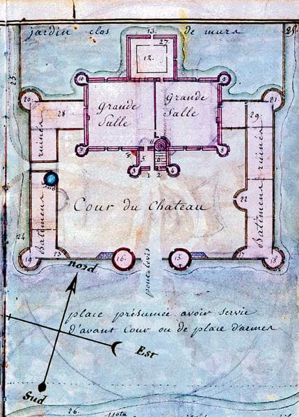 puits ; chapelle ; pigeonnier ; verger ; abreuvoir ; jardin d'agrément ; vivier