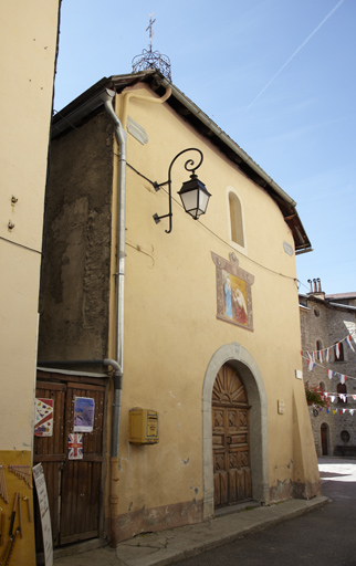 L'édifice est accolé au nord de l'église paroissiale, au niveau de la quatrième travée de celle-ci. D'un plan à vaisseau unique, la chapelle est constituée d'une nef de deux travées et d'une travée de choeur, avec un chevet plat au sud. Une tribune haute occupe la première travée. L'ensemble est voûté d'arêtes sur arcs doubleaux retombant sur des colonnes engagées à chapiteaux pyramidaux. Le sol est couvert d'un parquet à points-de-Hongrie ; le choeur est légèrement exhaussé sur une estrade en bois. Dans le choeur, de part et d'autre de l'autel, deux niches en cul-de-four sont percées dans les murs est et ouest, elles sont ornées d'un décor en relief de gypseries. La chapelle est éclairée par trois baies en plein cintre percées dans le mur est, ainsi que par une baie rectangulaire, sous la tribune, du même côté. Au nord, la porte (Référence IM04002617) en plein cintre est surmontée d'une baie de même. Le toit à longs pans est couvert de bardeaux de mélèze et présente une croupe au nord. Le clocher-tour se dresse à l'aplomb du contrefort ouest de la première travée, son toit en pavillon est couvert de tuiles vernissées en écaille, et est surmonté d'un campanile de fer forgé portant la cloche.