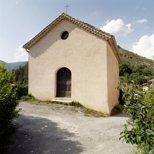 Petit édifice allongé du nord au sud, composé d'une nef trapézoïdale couverte d'un berceau en plein-cintre et d'une abside un peu plus étroite, également de plan trapézoïdal, couverte d'un berceau brisé un peu plus bas que celui de la nef. La maconnerie totalement enduite n'est pas visible, mais on peut la supposer en moellons de tuf. Le chevet plat et aveugle porte, au dessus du versant est, un clocher-mur à une arcade en plein-cintre construit en moellons de tuf et couvert de tuiles creuses en bâtière. Un seul toit couvre tout l'édifice, à deux longs pans asymétriques couverts de tuiles creuses.