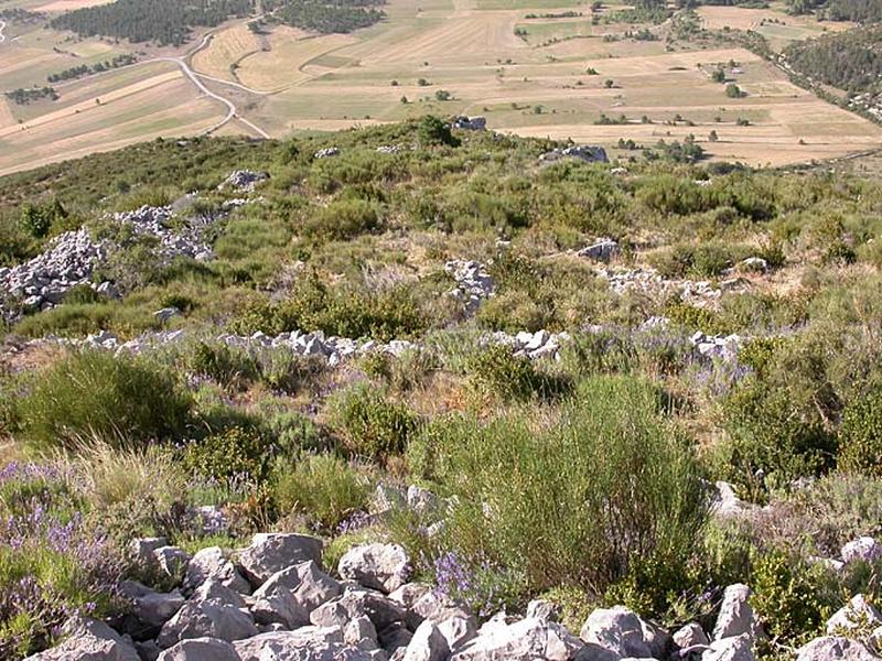 Epaulement à 1354 m d'altitude sur la crête de la ramification septentrionale du Teillon, dominant au nord le col de Saint-Barnabé, où passe la route de Demandolx à Saint-Auban et les anciens chemins de Castellane à Ubraye et à Verraillon, au sud la vallée de l'Estéron élargie en une cuvette assez spacieuse. Les versants très raides, entrecoupés de petits abrupts et recouverts d'une végétation arbustive dense, entourent une plate-forme aménagée et ceinte, du côté de la pente ascendante, à l'ouest, par un large fossé. Il ne reste rien des deux chemins d'accès, l'un à l'est en direction du village actuel, l'autre au nord vers le col de Saint-Barnabé. Les vestiges couvrent toute la plate-forme et le haut de la pente méridionale, où l'on voit encore une série de terrasses soutenues par des murs en pierre sèche. L'alignement des éboulis marque l'emplacement du mur d'enceinte et d'au moins une porte ouverte à l'ouest, vers le fossé. Sur le sommet, deux fragments de mur restés en place, avec leur parement en moellons équarris et assisés, appartenaient probablement au château. Les maisons du village, adossées à la pente et partiellement creusées dans le rocher, étaient aussi construites en moellons, avec des baies en pierre de taille (claveau d'arc) et couvertes de tuiles creuses (nombreux fragments dans les éboulis).