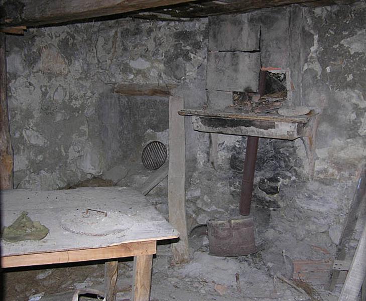 Cet édifice a un plan rectangulaire, perpendiculaire à la pente. Il comporte deux niveaux. L'étage de soubassement est occupé par : une petite pièce de logement saisonnier, éclairée par une fenêtre, avec un sol en dallage grossier calcaire et des murs enduits au mortier, une cheminée à manteau droit sur le mur est ; une étable, au sol en terre battue, aux murs non enduits. Le logement est séparé de l'étable par un mur maçonné. Le rez-de-chaussée est affecté pour sa majeure partie au fenil, avec un sol en plancher avec remplissage de mortier dans les interstices. Une trappe est aménagée dans le plancher pour jeter le fourrage dans la crèche située en dessous ; dans l'angle sud-est est aménagée une partie de logement sommaire, éclairé par une fenêtre et aux murs enduits. L'accès à l'étage de soubassement se fait par une porte cochère ; l'accès à la pièce de logement se faisant via l'étable. L'accès à l'étage de comble se fait par une large baie fenière ; l'accès à la partie logement se faisant par une porte- haute dans l'élévation opposée. L'ensemble est construit en petit appareil de moellons calcaire sans enduit. Le toit à longs pans couvert de plaques ondulées de ciment-amiante a été refait récemment. Dans l'élévation sud, au-dessus de la porte cochère, se trouve enchassée une pierre de taille cylindrique saillante sur laquelle est gravé un chronogramme.