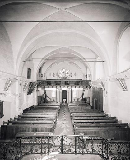 Croupe sur chevet plat, toiture en tôle ondulée au moment de l'enquête.