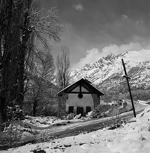 Une chapelle sous le titre de Saint-Genès est mentionnée en 1225 dans le cartulaire d'Oulx. L'édifice actuel paraît dater du 15e siècle. La façade antérieure devait être ouverte sur l'extérieur.