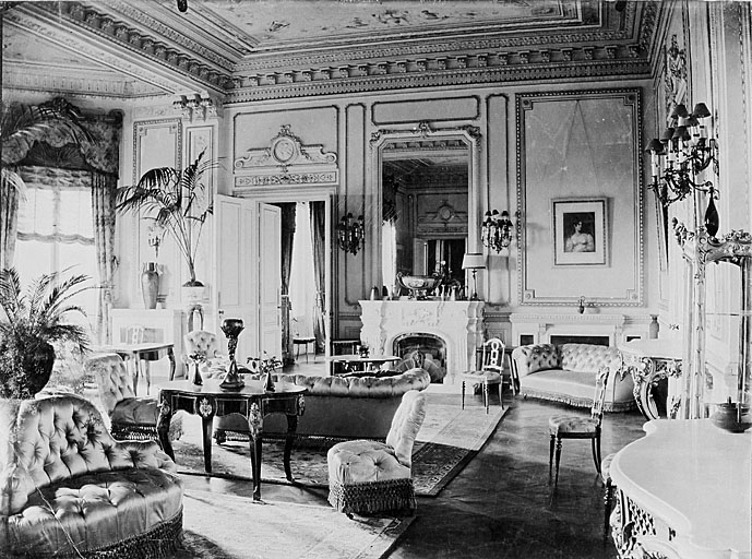 Château de plan carré de 2 étages et 2 ailes en rez-de-chaussée couvertes en terrasse d'agrément. Volumétrie composite symétrique avec axe sur le grand salon et l'escalier monumental qu'éclaire un oculus zénithal. Le perron ouest et le porche ouvrent sur le vestibule et la galerie transversale. A l'est le jardin d'hiver polygonal, avec des baies en anse de panier, est couvert en terrasse d'agrément. La façade sud ordonnancée, avec avant-corps polygonal en rez-de-chaussée couvert en terrasse d'agrément, a un riche décor sculpté. L'étage-attique avec fronton sur la travée centrale en avant-corps domine les travées centrales. Une fois reconstruit, l'édifice de hauteur uniforme est dépourvu de toute ornementation. Au sud une loggia centrale à travées rythmiques éclaire le hall-salon d'où part l'escalier dénudé à volée droite et volées cintrées symétriques. Au sud-est vestibule voûté en arc-de-cloître, au nord-ouest salle à manger voûtée d'arêtes, au sud-ouest salon vénitien orné de marbres et de peintures à fond d'or. A l'étage une loggia ouvre au sud en triplet.
