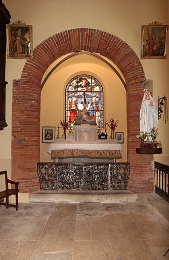vitrail (étudié dans la base Palissy) ; menuiserie (étudiée dans la base Palissy) ; décor stuqué (étudié dans la base Palissy)