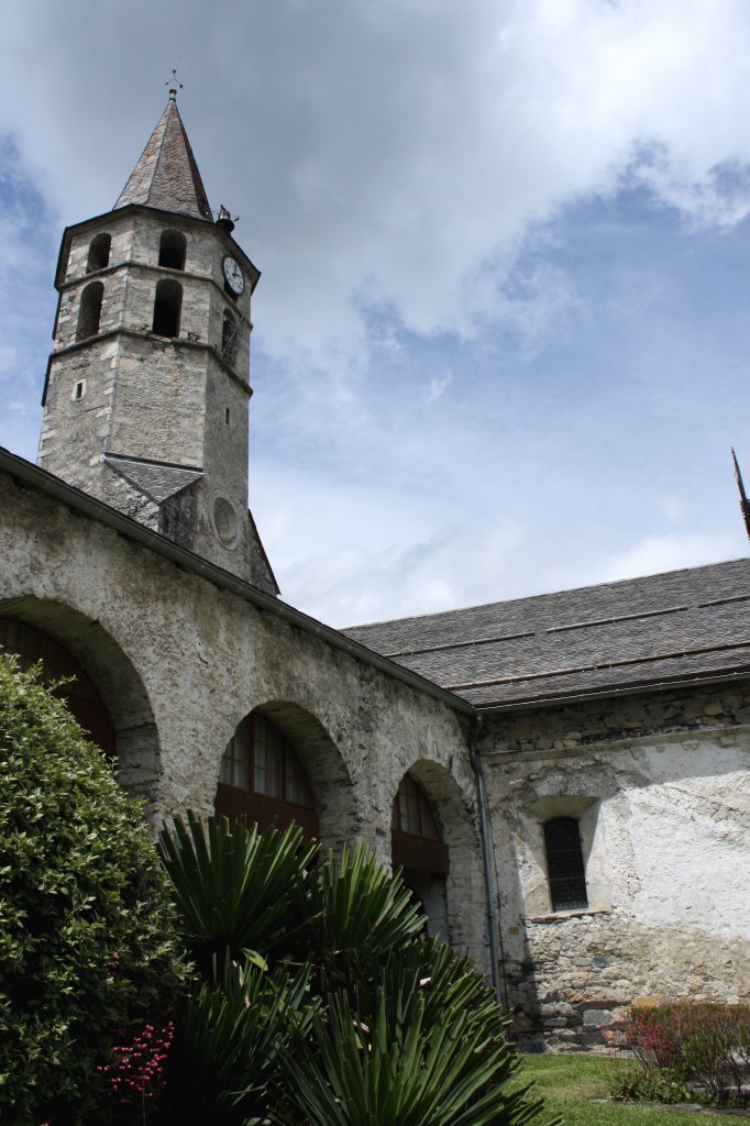 Eglise d' époque romane (angle sud-ouest) , agrandie vers l' est aux 15e-16e siècles. Doublement de la nef à la fin du 17e ou au début du 18e siècle.