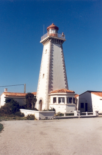 - Description architecturale : £Hauteur au dessus de la mer : 68, 32 m.£Taille générale : 19, 40 m hauteur de la focale : 17, 26 m.£Description : Tour pyramidale à section carrée en maçonnerie lisse et chaînes d'angle faisant corps avec différents bâtiments. Consoles assemblées par des arcs supportant une rambarde métallique. Lanterne métallique. Différents bâtiments. Terrain.£- Description technique : £1ère optique : 1951 : feu à 2 éclats blancs toutes les 10 secondes, focale 0, 25 m, optique en forme de V.£Cuve à mercure : 1951 Sautter-Harlé.£Combustibles : £Electrification : 1951.£- Etat actuel : Tour pyramidale à section carrée en maçonnerie lisse et chaînes d'angle faisant corps avec différents bâtiments de un niveau. Terrain, jardin, annexes. Lanterne rouge standard de Ø2 m de marque Sautter-Harlé à vitrage cylindrique de un niveau. Optique tournante de 2 éclats réguliers à 2 panneaux en V. focale 0, 25 m. Cuve Sautter Harlé Ø 520 Ebor 2100 installée dans un réceptacle métallique SH. Lampe halo 180w. Feu à 2 éclats groupés tournants 10 sec. Portée 20 milles.