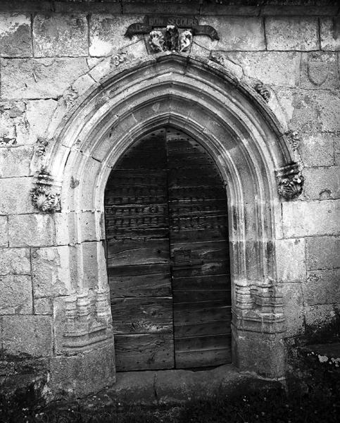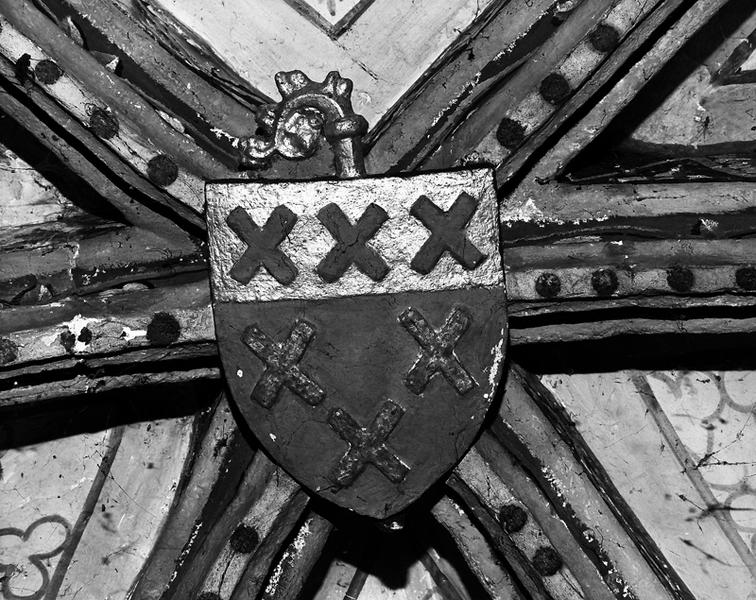 sujet : feuille de chou, support : culots et archivolte de la porte ; armes de la famille de Balzac, support : clefs de voûte de la nef et de l'abside, extérieur des murs ouest et sud