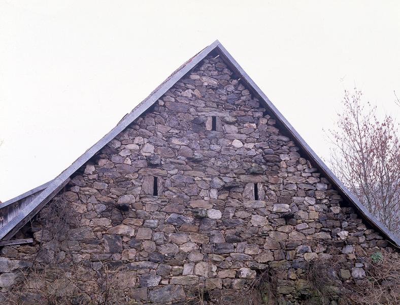 Maison en moellons de gneiss, encadrements en trachyte ; forge au premier étage de soubassement, logis au second étage de soubassement ; accès au logis par un escalier extérieur, accès au comble par une rampe ; grange-étable en moellons de gneiss, encadrements en bois, couverture en ardoise