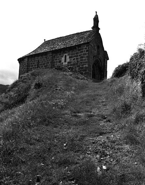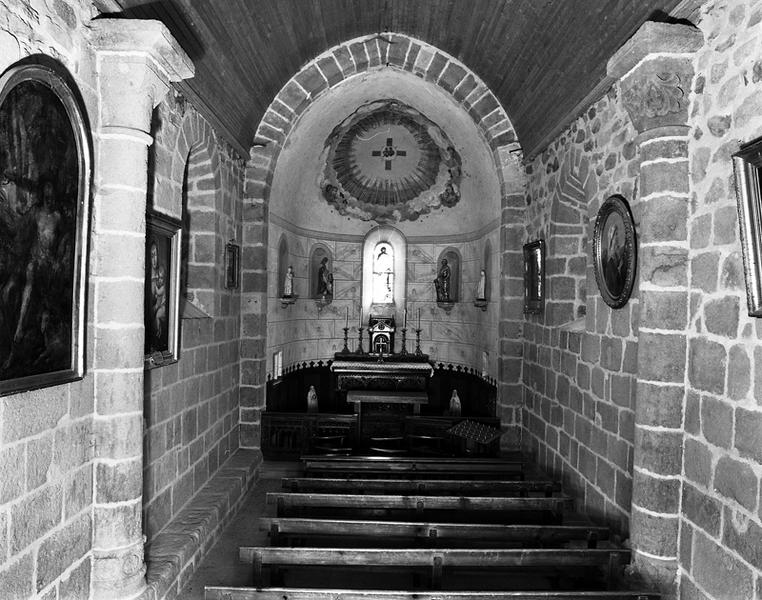 La chapelle est construite sur un rocher, site de l'ancien château, qui domine le bourg de Saignes et la plaine arrosée par la Sumène ; l'abside voûtée en cul-de-four est couverte d'une croupe ronde ; la nef à 2 travées a un lambris de couvrement qui adopte la forme d'un berceau brisé ; des différences d'appareillage indiquent des modifications notamment pour la partie supérieure des murs gouttereaux
