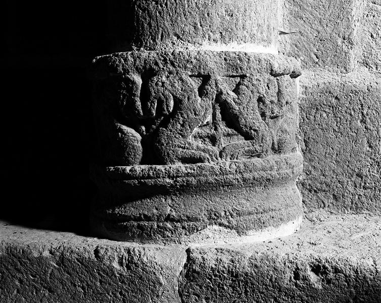 support : baie de l'abside ; support : baies et rosace de la nef ; support : bases de colonnes, chapiteaux et modillons ; support : cul-de-four de l'abside
