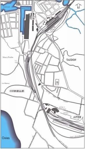 quai ; bureau d'entreprise ; hôtel de voyageurs ; restaurant ; atelier de réparation ; garage