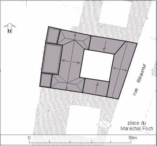 Hôtel de plan en H,entre cour et jardin,passage couvert.