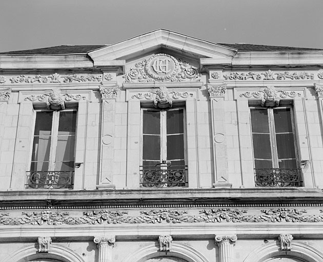 Sujet : pilastres, colonnes, fleurs, feuillage, rubans, têtes de femme, volutes ; support : façades du café et du cinéma ; sujet : colonnes, pilastres, décor végétal, support : décor intérieur du café ; sujet : colonnes, coquilles, décor végétal, masques d'homme, hippocampes, cornes d'abondance, support : décor intérieur de la salle de cinéma.