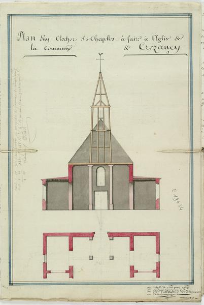 Les bases de la construction peuvent dater du 12e siècle (chevet et contreforts de la nef en grès rouge et noir). Ayant subi sans doute de grands dommages au cours des guerres de religion, l'église est en ruine au 17e siècle (registres paroissiaux) ; d'importants travaux sont entrepris à partir de 1670 : le chur, le clocher et la nef sont reconstruits. L'église de Crézancy ne fut pas rasée et rebâtie au 19e siècle, malgré un état de délabrement constaté à maintes reprises depuis le 18e siècle. Le conseil de fabrique et la commune entreprirent dès les années 1840 d'importants travaux de restaurations et d'agrandissement : dans les années 1840, réfection de la voûte de la nef (rajouts de colonnes dans la nef) , construction de la sacristie et agrandissement de la chapelle nord (dite chapelle Sainte-Catherine). En 1880, restauration de la toiture de l'église. Construction d'un nouveau clocher en 1889 (d'après les plans de M. Bollée, fondeur de cloches à Orléans) et réparation du pignon ouest de l'église.