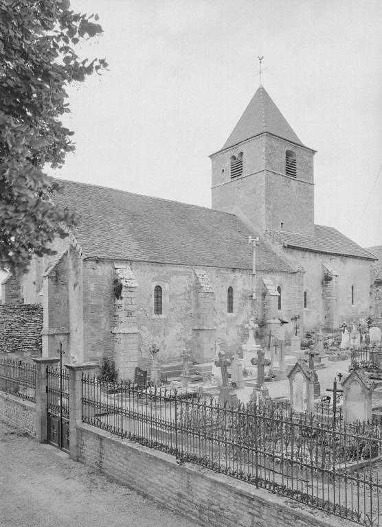 Eglise construite au 13e siècle. La sacristie est une adjonction du 18e siècle. Sous le porche, des graffiti donnant les millésimes 1774 et 1775 indiquent sans doute un remaniement de celui-ci (arcade ou voûte). En 1878, d'après un devis de Carrière, architecte à Pouilly, la couverture en pierre de la nef est refaite en tuile, avec rehaussement du pignon, et le "lambris faisant voûte" est remplacé par une voûte de brique creuse établie sur trois arceaux en ciment, supportés par des culots en pierre du pays ; la fenêtre du mur gauche de la nef est murée et deux fenêtres sont ouvertes dans le mur opposé. L'édifice a subi une restauration intérieure vers 1970.