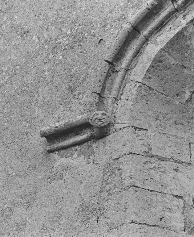 Le tympan du portail de la nef est décoré d'une croix grecque inscrite dans un cercle. Des têtes humaines, dont l'une grimaçante, sont sculptées sur l'archivolte et à la partie inférieure des piédroits de la fenêtre du mur ouest.