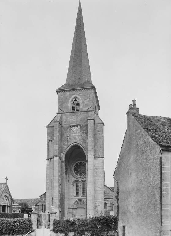 Le choeur et le transept, édifiés vers 1150, sont les parties les plus anciennes de l'église. La nef a été bâtie vers 1160-1170, mais ses parties hautes datent de la fin du 13e siècle ; la façade occidentale (refaite au 19e siècle) a probablement été élevée dans la 1ère moitié du 13e siècle. Le clocher-porche pourrait dater des années 1300-1320. Vers 1650, le transept est restauré et la voûte de la chapelle sud refaite ; une chapelle seigneuriale est bâtie (?) en 1675 au nord du choeur. En 1757, le clocher est consolidé par des tirants de fer ; de 1785 à 1788, on répare la nef (qui n'a plus son couvrement d'origine, mais une voûte coupant le vaisseau en hauteur et masquant les fenêtres hautes) , ainsi que les trompes de la flèche octogonale en tuf et la charpente couverte en bardeaux dont elle est revêtue. Au milieu du 19e siècle, le clocher-porche menace ruine et l'église est très délabrée. Ch. Suisse dresse en 1851 les plans de l'édifice. Les travaux de restauration, exécutés en régie de 1860 à 1867 d'après un devis sommaire de Viollet-le-Duc de 1855, sont dirigés par Grosley, architecte à Semur : restauration des piles du clocher, des murs et des contreforts des bas-côtés, démolition de la flèche en tuf au profit d'une flèche en charpente, reconstruction de la façade ouest, démolition de la voûte de la nef, remplacée par une fausse voûte en bois avec nervures en plâtre, adjonction de deux fenêtres hautes dans la dernière travée de la nef. En 1885, Mairet restaure le choeur et le transept. En 1911, la couverture de laves du choeur et du transept est refaite et en 1913, la chapelle de la Vierge est restaurée par Louzier.