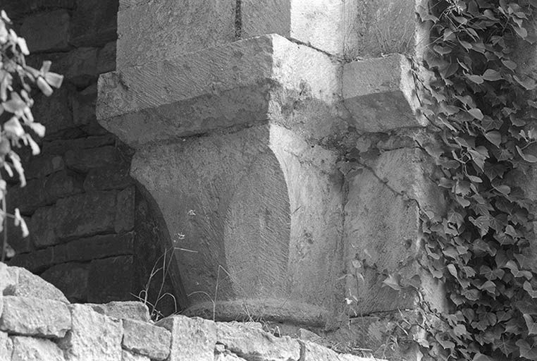 Les chapiteaux des grandes arcades sont sculptés de feuillages très stylisés, de volutes et de rosettes, certains selon un schéma dérivé du corinthien : l'un d'entre eux présente aux angles une petite tête humaine. Plusieurs bases de colonnes des piliers de la nef sont ornées de godrons ou de torsades.