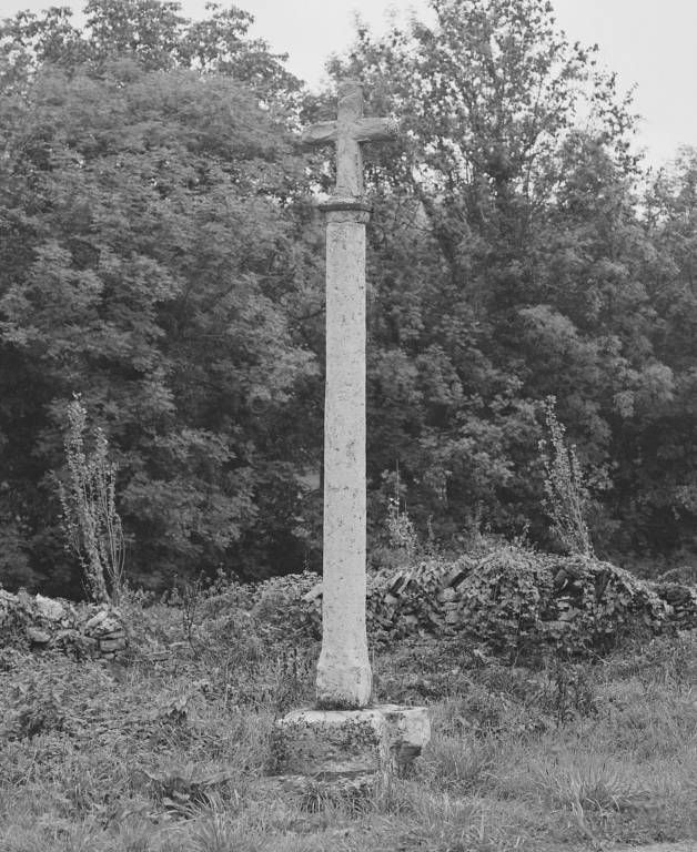 Croix vraisemblablement érigée dans la première moitié du 19e siècle, dont l'orientation par rapport au socle a été changée ultérieurement.