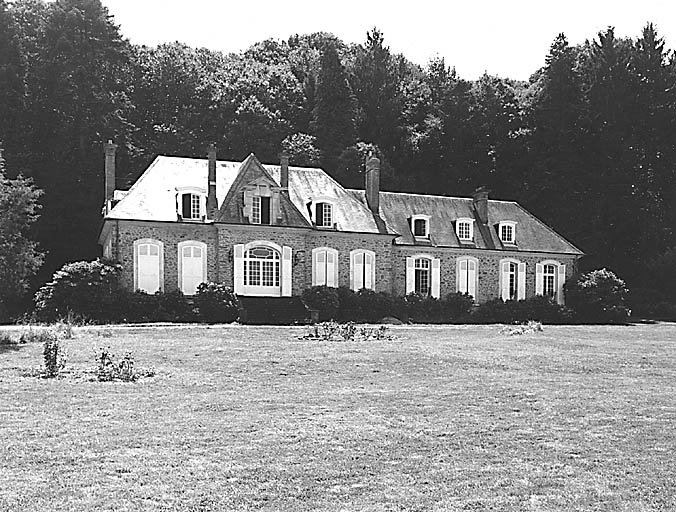 Ce château est constitué d'un logis construit entre bois et parc, d'un bâtiment tout proche de la route, situé à gauche du chemin d'accès au logis et regroupant la conciergerie, les écuries et le chenil et d'un ensemble agricole, situé à l'est, en bordure de la route, regroupant un logement, une grange étable, deux hangars, un lavoir, un puits et un garage. Le logis, à rez-de-chaussée sur étage de soubassement et étage de comble aménagé, avec demi étage de comble perdu, est composé d'un corps de bâtiment est, double en profondeur, abritant un grand hall central, un bureau (ancien billard) , un salon et la cage d'escalier, située à l'arrière et d'un autre corps de bâtiment latéral, simple en profondeur, abritant quatre pièces distribuées par un couloir sud. Une porte du bâtiment est comporte une grille ornée du monogramme A L (initiales du commanditaire Auguste Lavalette).