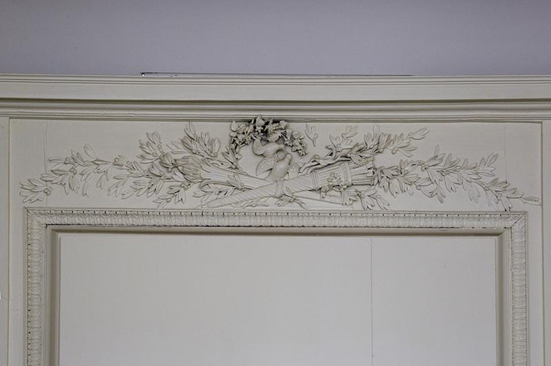 Des frontons alternativement cintrés et triangulaires ornent la façade sur rue ; dans la partie droite ceux-ci sont soutenus par des mufles de lion au rez-de-chaussée et des têtes d'homme à l'étage.