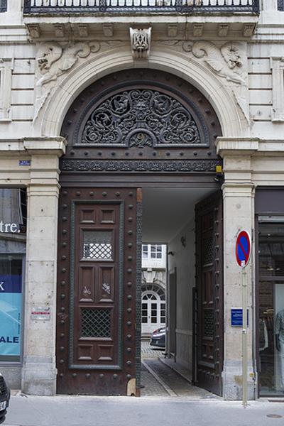 Sur la façade antérieure sont associés un vocabulaire classique, comme le fronton et les baie à crossettes, avec des éléments relevant du fantastique comme les deux dragons ailés avec des pattes en forme d'aile situés de part et d'autre du portail d'entrée. L'immeuble a été protégé MH en même temps que l'hôtel de Mesmay dans lequel il a été inclus.