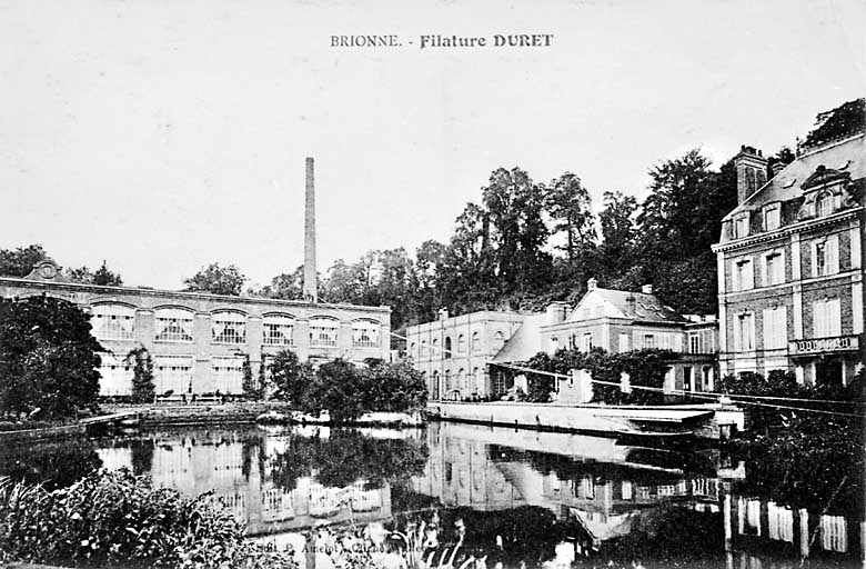 La Grande Fabrique, ou Grande Filature propriété de Mr Danet a été réglée par arrêté préfectoral en 1802. De ce bâtiment ne subsiste que la pierre d'inscription du fronton portant le nom de l'architecte : Bouet de Rouen et datée de l'an 11. A son emplacement, Mr Lemarrois est autorisé par arrêté préfectoral du 4 août 1820 de construire ou reconstruire un moulin à foulon. Le décret du 26 mars 1851 réglemente l'usine acquise par Mr Duret comprenant une petite filature (l'ancien moulin à foulon) actionnée par une roue de côté et une grande filature actionnée par une turbine hydraulique. Une troisième turbine est ajoutée en 1861. Vers 1900, un incendie ravage le bâtiment principal. Reconstruit, sa façade porte la date de 1902 et le nom de Decaux, architecte. Le logement patronal et les bureaux sont de la même campagne. La petite fabrique à disparu. Depuis 1956, les lieux sont occupés par les établissements Compin spécialisés dans l'équipement des collectivités.$ La roue de côté et la turbine ont aujourd'hui disparu. Depuis 1949, l'usine fonctionne au moyen d'une génératrice.$ En 1817, 150 ouvriers se trouvent en chômage par manque de travail. En 1886, les frères Duret emploient 390 ouvriers.