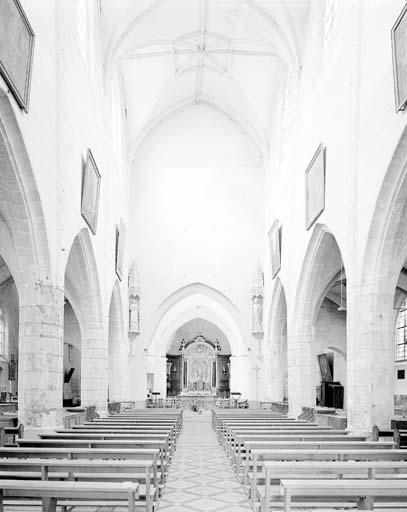 Eglise se composant d'un choeur s'achevant en une abside voûtée en cul-de-four et d'un vaisseau principal flanqué de collatéraux. Ce dernier est épaulé par des arcs-boutants prenant appui sur de puissants contreforts. Le choeur est surmonté d'une tour octogonale à un seul étage percée de baies en arc brisé et sans couverture ; on peut supposer qu'une flèche était prévue, l'épaisseur des murs de l'abside et les quatre piliers du choeur semblent l'indiquer. Une tour carrée à sept niveaux s'appuyant sur des contreforts sommés de pinacles et flanquée d'une tourelle d'escalier s'élève à l'angle sud-ouest. Voûte du vaisseau principal en briques à augets, voûtes des collatéraux en pierre, carrelage du 18e siècle, toit en ardoise de Trélazé (Maine-et-Loire) , chapelle nord couverte de tuiles.