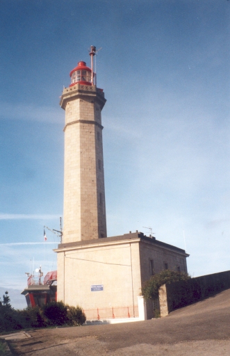 - Description architecturale : £Hauteur au dessus de la mer : 56 m.£Taille générale : 35 m.£Hauteur de la focale : 33 m.£Description : Tour octogonale en maçonnerie de pierres apparentes, surmontant du côté mer, un bâtiment rectangulaire en maçonnerie de pierres apparentes et un autre en métal rouge formant vigie pour la Marine Nationale. Fût terminé par une astragale et une succession de moulures supportant une balustrade en dés ajourés. Placard bois au dernier niveau intérieur pour le rangement des lampes. Support à galets.£- Description technique : £1ère optique : 1848 : feu fixe blanc varié par des éclats longs toutes les 3 minutes, focale 0, 70 m.£Autres optiques : £- 1905 : feu fixe blanc varié par des éclats à secteur blanc et rouge renforcé de focale 0, 92 m.£- octobre 1905 : secteur blanc renforcé de focale 0, 92 m et 0, 70 m.£Combustibles : £Huile végétale : 1848.£Huile minérale : vers 1975.£Vapeur pétrole : 1905.£Electrification : 1930.£Automatisation : 1994.£- Etat actuel : Feu auxiliaire sur la passerelle. Lanterne cylindrique rouge Ø 2, 40 m à 2 niveaux de vitrage. Feu à 2 occultations 12 sec à 6 secteurs blancs et rouges. Optique fixe d'horizon 360° focale 0, 50 m, BBT sur support modifié (ancien support à galets) Luchaire. Lampe halo 650W. Portée 17 milles.