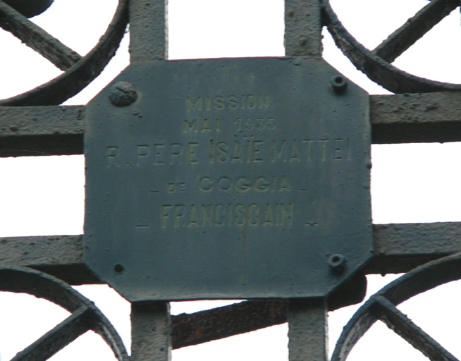 Croix érigée à la suite de la mission prêchée à Arro par le père franciscain Isaïe Mattei de Coggia en mai 1935, et offerte par les époux Leca comme le précise l'inscription portée sur les deux cartels métalliques fixés sur celle-ci. Base de la croix refaite à la fin du 20e siècle.