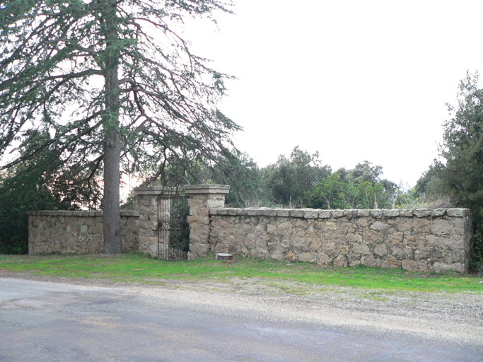 Enclos funéraire contenant des tombeaux de la famille Colonna, implanté en 1900 comme le signale la date portée sur l'imposte du portail en fer forgé accompagnée de l'inscription suivante : Re/ Fa/ CP/ MCPNS/ DP1900.