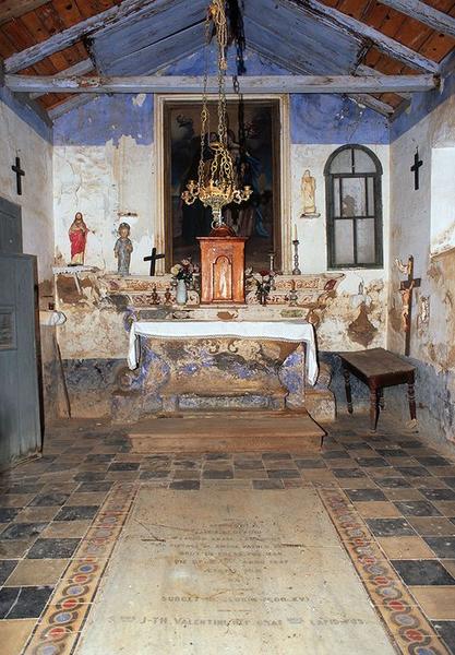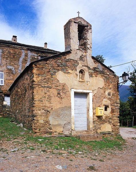 Edifice de plan allongé, à chevet plat, formé d'une nef unique et d'un choeur couverts d'une charpente en bois apparente. Niche de dévotion en façade. Présence d'un campanile à baie libre.