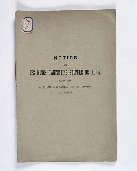 Le gisement de Meria, figuré sur le Plan Terrier dressé en 1793, fait l'objet de nombreux travaux de recherches à partir du milieu du XIXe siècle. Plusieurs filons sont reconnus, notamment ceux de Fossato, San Martino et Vallone. De 1855 à 1857, Antoine Pietri, juge de paix à Brando, son frère Marc et Dominique Antony demeurant à Morsiglia sont autorisés à réaliser des fouilles au lieu-dit Pastina, près de la chapelle San Martino. Ils obtiennent la concession le 10 mars 1858. La mise en valeur du site concerne les filons de Fossato et surtout de San Martino. L'exploitation est régulière puis connaît un ralentissement jusqu'en 1878, date à laquelle la concession est reprise par un consortium anglais dirigé par Charles Galland. La "Société des Mines de Meria" est créée. Les travaux d'exploitation sont dirigés par l'ingénieur Duranteau. En 1884, Galland est déclaré seul concessionnaire. Au lendemain de sa mort survenue au cours de l'année, la concession est attribuée à Antoine Franceschi de Rogliano, son légataire testamentaire. Des difficultés financières entraînent la vente par adjudication de l'exploitation le 13 mai 1898. Celle-ci est attribuée à la "Société Corse des Mines d'Antimoine de Meria", fondée par des hommes d'affaires bastiais : Etienne-Louis et Charles Orenga, les frères Dominique et Fortuné Thiers, Jean-Antoine Musso, Philippe-Auguste Pierangeli. Le filon de Vallone, reconnu dans les années 1870, donne lieu à une exploitation de 1883 à 1913. D'importants aménagements tel le creusement des travers-bancs Giannoni et Orenga sont réalisés. En 1908, la "Société Corse des Mines d'Antimoine de Meria" fait faillite ; la "Société Anonyme des Mines de Meria" lui succède. Celle-ci donne un nouvel élan à l'exploitation du site, modernise les installations avec l'implantation sur le secteur de Vallone d'une laverie et fait construire à San Martino une centrale électrique en 1911. En raison d'une dégradation de la situation économique, la société est mise en liquidation en 1914. En 1926, la concession est cédée à la "Société Minière du Cap Corse" dont le siège social est à Ivry, sous la direction de l'ingénieur Flavigny-Barrois. En 1952, la "Société d'Etudes et de Recherches pour l'Antimoine", filiale de la "Société Nouvelle des Mines de la Lucette", reprend la concession. Elle envisage d'exploiter de nouveaux filons en Corse, aux lieux-dits Belle Fachieri à Luri et San Martino à Meria, avec l'aide de 16 ouvriers mineurs, mais le projet est vite abandonné. En 1983, la "Société Nouvelle des Mines de la Lucette" devient concessionnaire des mines d'antimoine de Luri et Meria, mais elle se désengage rapidement. L'exploitation du gisement de Meria, le plus important des gisements d'antimoine du Cap Corse, a fourni plus de 5 600 tonnes d'antimoine métal. Ce sont principalement les filons de San Martino et de Vallone qui ont été valorisés.
