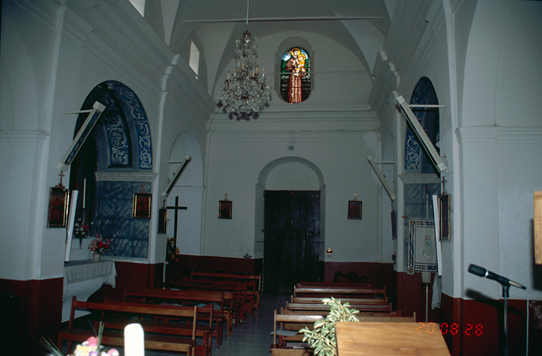 Edifice de plan allongé, formé d'une nef unique à vaisseau voûté en berceau à lunettes et à chapelles latérales voûtées en berceau plein-cintre. Choeur voûté en berceau plein-cintre. Choeur voûté en berceau à lunettes. Présence d'une tour-clocher au couronnement mouluré.