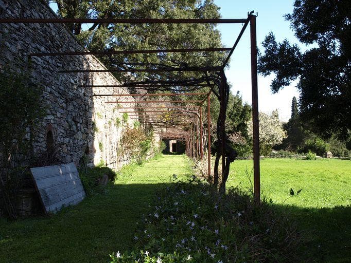 mur de clôture ; portail ; terrasse en terre-plein ; édifice agricole ; escalier indépendant ; bassin ; jardin d'agrément ; clôture de jardin