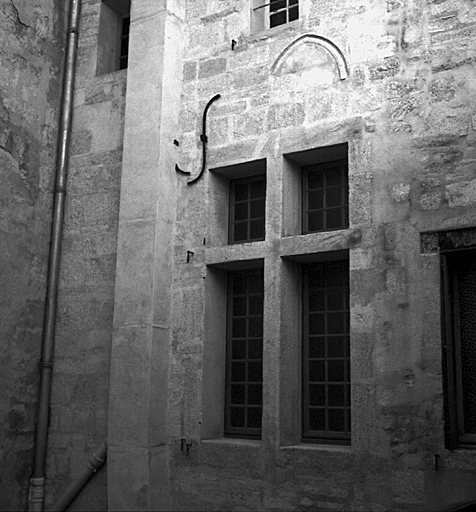 bâtiment en quadrilatère sur cour. La loggia de l'escalier ouvert est accolée à celle d'une galerie de distribution, combinaison rare, un peu archaïsante pour le 4e quart du 17e siècle.