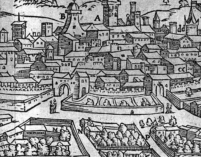 1ère mention en 1113 mais construction probable au 11è siècle. Nouvelle consécration en 1268 à la suite d'une reconstruction ; la flèche du clocher sera reconstruite en 1388 puis en 1471. Détruite en 1568 au moment des troubles religieux, l'église ne sera pas reconstruite ; son emplacement sera inféodé par le chapitre cathédral à des particuliers à partir de 1660 ; en 1685 une ordonnance épiscopale en prescrit cependant la reconstruction, pour laquelle l'architecte Daviler établira en 1700 un projet qui n'aura pas de suite
