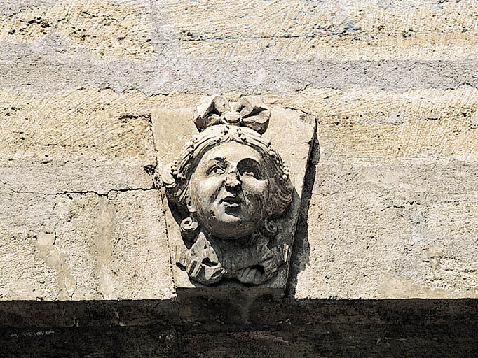 Sur les agrafes des baies, à côté de visages féminins souriants sans signification précise, apparaît le thème des Quatre Saisons parfois confondu avec des figures de la mythologie. Le Printemps (jeune fille au collier de roses) , l'Eté (jeune femme avec une couronne d'épis, qui, aussi bien, pourrait être Cérès, la déesse des moissons) , l'Automne (jeune femme couronnée de pampres et de grappes) , et l'Hiver, symbolisé par un visage féminin. Trophées sur les thèmes de la Musique et de la Vie champêtre.