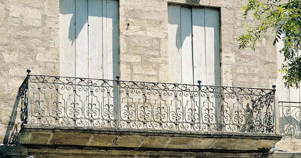 escalier de pierre sur cour, y compris toutes les portes en menuiserie ; façade à jour de cet escalier sur la cour y compris la balustrade de pierre du deuxième étage