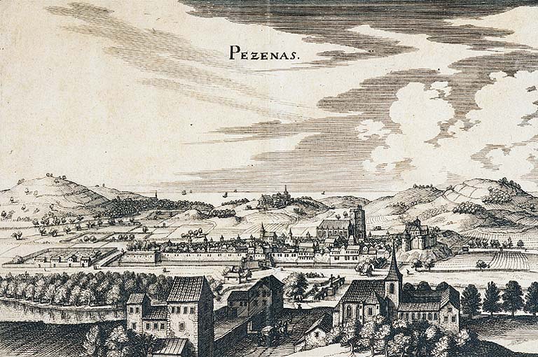 L'inventaire ne porte que sur le territoire de la commune de Pézenas : ville et écarts. L'architecture du 20e siècle n'a pas été prise en compte. En 990 (mention dans le testament de Guillaume, vicomte de Béziers et Agde) , un premier noyau d'habitation semble construit autour de l'église Saint-Pierre mais il sera rapidement délaissé au profit d'un emplacement mieux protégé. Le château est élevé dans le courant du 11e siècle, et entre 1131 et 1140, est implantée la commanderie du Temple, pouvant également servir de défense à l'agglomération encore dépourvue d'enceinte fortifiée. A partir de 1262, Pézenas, achetée par Louis IX, devient ville royale et le châtelain représente désormais le souverain. L'octroi de foires générales, premier geste de la protection royale, est à l'origine de la richesse de la ville. La première moitié du 13e s. voit l'émergence du consulat. Avec la construction de l'enceinte (1290 : 1e mention du fossé) et le transfert de la paroisse intra muros, la ville médiévale est constituée. Le 28 mars 1420, le futur Charles VII accorde le droit d'établir un grenier à sel. En 1456 a lieu la première session des Etats généraux, garants de l'autonomie de la province et donnant à Pézenas un puissant rôle politique, confirmé par la nomination en 1526 d'Anne de Montmorency-Damville comme gouverneur de Languedoc. En 1553, un nouveau marché, la " halle couverte ", est établi hors les murs, à proximité de la porte Saint-Blaise. A partir de ce moment, l'urbanisation des faubourgs marque la volonté d'expansion de la ville achevée par la construction d'une nouvelle enceinte entre 1597 et 1611. De nouveaux ordres religieux et des confréries nouvelles bâtissent leurs églises dans l'espace ainsi protégé. En 1627, une promenade surélevée, le Quay, est construite. En 1629, Richelieu promulgue l'édit des Elus qui retirait aux Etats la répartition et la levée des impôts, grave atteinte à l'autonomie politique de la province. Henri II de Montmorency, qui avait soutenu la révolte, sera décapité à Toulouse, le 16 octobre 1632. En 1651, le comté de Pézenas échoit à Armand de Bourbon, prince de Conti, nommé gouverneur de Languedoc en 1660 et qui s'installe à la Grange des Près où il accueillera Molière et sa troupe. Au 18e siècle, le rôle de Pézenas comme capitale régionale se prolonge désormais par sa conversion réussie en centre économique. La ville voit s'élever de nombreuses constructions édilitaires, dont l'église collégiale Saint-Jean et l'avant-corps de la maison consulaire. Au 19e siècle, l'extension de Pézenas s'achève par l'implantation en 1863 de la gare du Midi, le prolongement de la perspective du Quay et les travaux de rénovation du théâtre. Le 21 juin 1965, est créé un secteur sauvegardé, recouvrant la totalité de la ville ancienne et la majeure partie de la ville moderne.