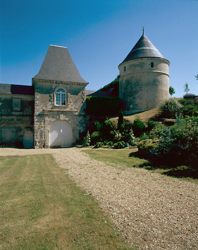 Le château est composé de plusieurs corps de bâtiments : Au Nord, 2 tours rondes d'enceinte, en moellons de petit appareil, recouverts d'enduit, sont percées de meurtrières horizontales et de baies rectangulaires ou en arc en plein cintre, encadrées de pierre de taille. La tour Nord-Ouest semble isolée des autres bâtiments, n'étant reliée à l'aile Ouest que par un mur de soubassement tandis que la tour Nord-Est, est reliée au colombier par une série de caves creusées dans le coteau. Le colombier, situé à l'angle Sud-Est de l'aile Sud, est composé d'une tour cylindrique, couverte d'un toit conique. Il est doté de 2 ouvertures en plein cintre à l'étage supérieur. A l'intérieur, il a conservé les trous de boulins (au moins 800) et une partie de l'échelle tournante en bois. Les 4 meurtrières indiquent que ce colombier avait également un rôle défensif. L'aile Sud, en moellon enduit, est composée d'un pavillon central faisant office, au rez-de-chaussée de porche et de passage entre les 2 cours, orné d'une plate bande à crossettes en escalier. Au 1er étage, une grande salle, d'après les descriptions anciennes pourrait être la chapelle fondée par Jean Royer. Ce pavillon central est encadrée de manière symétrique, sur la façade Nord de l'aile, par une sorte de galerie couverte, formant une pièce à l'étage, reposant sur une colonne ornée d'un chapiteau à ordre ionique et de 2 petits pavillons d'angle percés à l'étage d'un oculus. L'aile Ouest, en moellon enduit, à élévation ordonnancée à travées, à un étage carré et un étage de comble est constituée de 2 grands pavillons d'angle couverts de hauts toits en pavillon encadrant une partie médiane à une travée couverte d'un toit à longs pans. De grands claveaux ornent les chaînages d'angle et les encadrements des baies. Sur la façade Est, deux baies du rez-de-chaussée sont encadrées de pilastres, surmontées d'un oculus, couronné par un fronton cintré à volutes. Les corniches sont ornées de modillons ou de consoles à volutes. Les lucarnes et les oculi de l'étage de comble sont surmontés d'un fronton cintré, couronné d'un pot à feu. A l'angle des façades Ouest et Sud, une haute tour cylindrique est couverte d'un toit conique et percée d'une lucarne. Sur la façade Sud de l'aile Ouest est placé en rez-de-chaussée un petit bâtiment récent au toit en appentis, couvert en tuiles mécaniques. Communs : Bâtiments en moellon enduit couverts de toit à longs pans. Pignons découverts. Bâtiment 2 : Charpente à chevrons formant fermes Bâtiment 3 : encadrement des baies rectangulaires par des claveaux en pierre de taille Portail d'entrée en pierre de taille composé comme un bâtiment avec une partie centrale servant de porte pour les voitures, ornée d'une plate bande à crossettes comme pour le porche de l'aile Sud. Cette porte est encadré de 2 parties latérales simulant une architecture, avec une baie fermée par des briques. L'ensemble est couronné de petits pinacles à fronton évoquant des créneaux médiévaux. La porte piétonne est à côté de la partie latérale. L'arc en plein cintre s'inscrit dans une construction en moellons. Un jardin en terrasse est situé en contrebas de l'aile Ouest. Un escalier en pierre en fer à cheval à une volée est ornée au centre d'une très belle stéréotomie en pierre sculptée formant un motif de coquille. Un bassin circulaire en pierre formant une fontaine jaillissante était située au centre du jardin. La transformation du jardin en champ et le mauvais état de la fontaine a conduit les propriétaires actuels à remonter les éléments conservés du bassin devant le château dans la partie Nord près des tours d'enceinte.