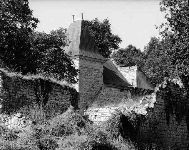 La défense était assurée non seulement par des fossés que l'on franchissait à l'est par un double pont-levis, mais aussi par deux pavillons en forme de tour bastionnée. Le corps de logis et sa tour d'escalier sont percés de canonnières ovales. La tour en éperon qui assure la défense à l'ouest possède les mêmes ouvertures ainsi que des archères. Tour d'escalier et tour en éperon en pierre de taille ; logis et dépendances en moellon. Tour d'escalier couverte d'un toit en pavillon en ardoise. Toit à longs pans en ardoise sur le logis. La grande salle transformée en grange est à demi ruinée ; les vestiges d'une cheminée subsistent à l'étage. Dans la partie nord-est de la cour se trouve une casemate voûtée en berceau et soigneusement appareillée, d'où part un escalier desservant une seconde galerie située environ 3 mètres plus bas, orientée perpendiculairement à la première et longue d'environ 6 mètres. Elle débouchait dans le fossé nord mais l'issue est maintenant obstruée ; un puits d'aération est placé à son extrémité sud.