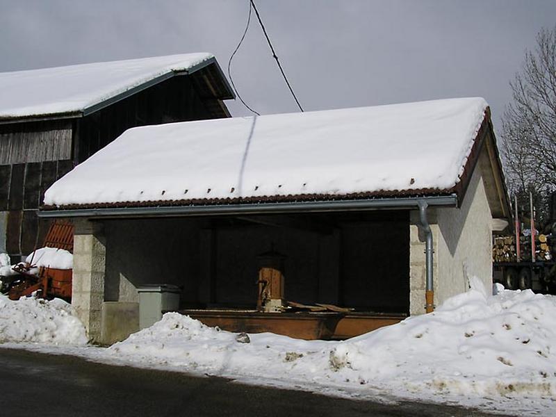Fontaine, lavoir du 19e siècle. Les bassins en fonte proviennent des forges de Varigney, à Dampierre-lès-Conflans (Haute-Saône).